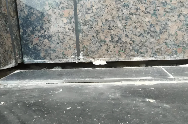 沉降縫兩側(cè)地面高度差明顯,可能伴隨排水倒灌問題。