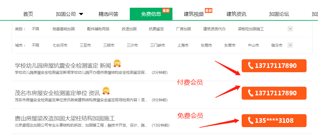 免費(fèi)會(huì)員一天只可以發(fā)布一條信息一個(gè)月最多可發(fā)布10條信息,聯(lián)系電話不能正常顯示,手機(jī)端最下面菜單欄電話只能放加固之家平臺(tái)的號(hào)碼;然而付費(fèi)會(huì)員發(fā)布信息擁有尊貴VIP標(biāo)識(shí),而且每條信息能夠正常顯示聯(lián)系電話,而且一天發(fā)布信息條數(shù)沒有限制,還有手機(jī)端最下面菜單欄的聯(lián)系電話也能同步,大大方便用戶聯(lián)系。