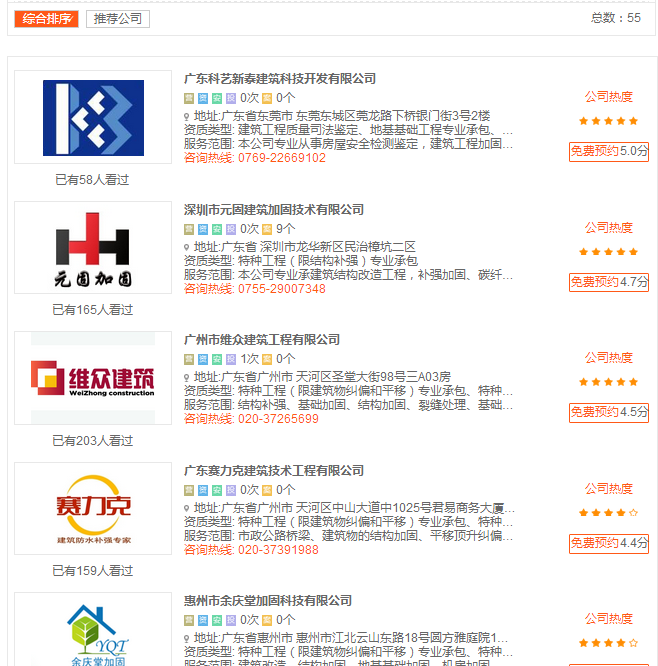 3、加固之家平臺會根據企業的實力與活躍程度,再根據業主的不同分類選項智能的排序,優先展示出業主的目標企業。